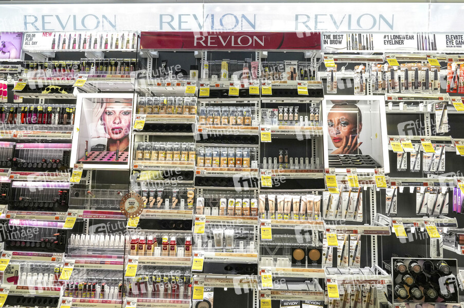 Die Revlon Inc. Aktie stürzte um 53 % ab, nachdem die Nachrichtenagentur Reorg berichtete, dass das Kosmetikimperium sich darauf vorbereitet, Insolvenz anzumelden. Im Bild die Ansicht von Revlon-Produkten in einem Duane Reade Store. (Symbolbild, Symbolfoto) New York, 10.06.2022