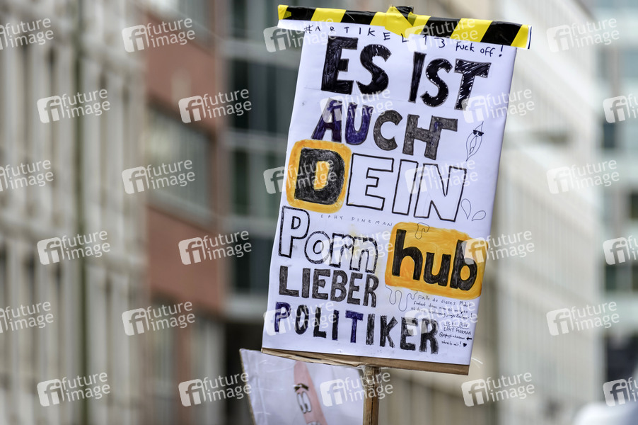 Zu einer Demonstration gegen die EU-Urheberrechtsreform zum Artikel 13 und gegen die Neuregelungen zu Internet-Uploadfiltern rief das Bündnis 'Berlin gegen 13' in der Rudi-Dutschke-Straße auf. Berlin, 02.03.2019