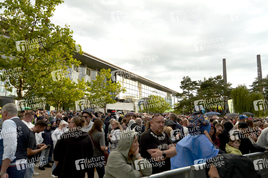 Jan Delay & Disko No. 1 beim Sommerfestival 2024 unter dem Motto 'Beats, Bands und Beach' in der Autostadt. Wegen einer Unwetterwarnung des DWD musste kurz vor Beginn des Konzertes das Publikum evakuiert werden; das Konzert begann 50 min später . Wolfsburg, 12.07.2024