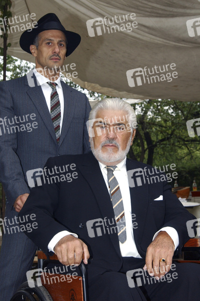 Urs Hefti und Mario Adorf beim Fototermin am Set des ARD-Fernsehfilms 'Vera - Die Frau des Sizilianers'. Meerbusch, 09.01.2003