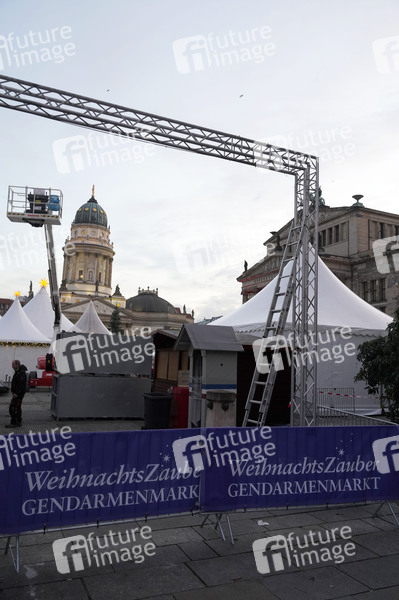 Aufbau vom Weihnachtsmarkt 'WeihnachtsZauber Gendarmenmarkt'. Berlin, 13.11.2021
