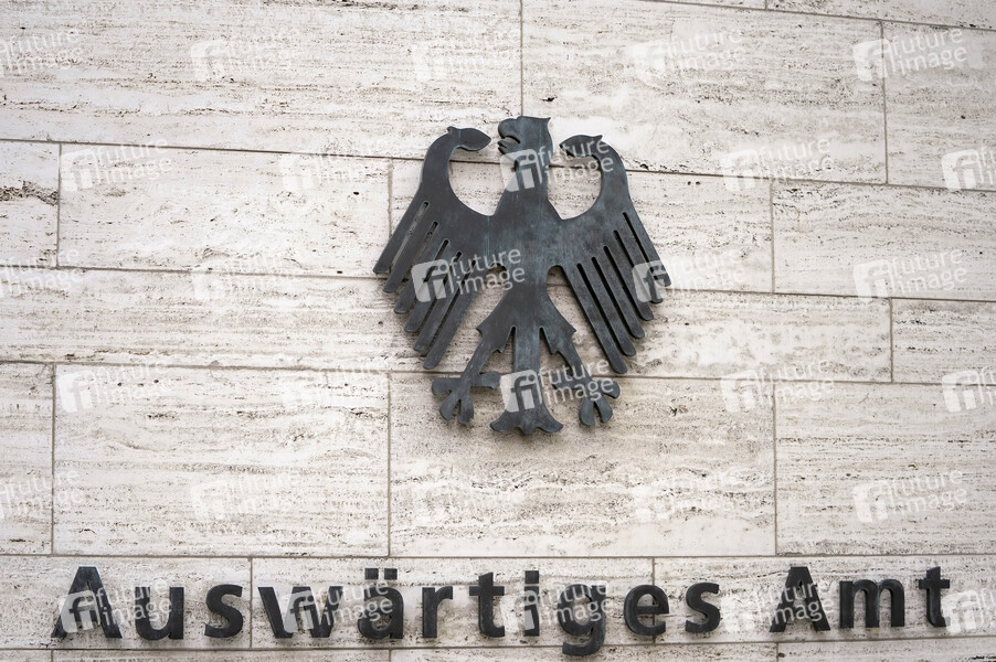 Logo des Aswärtigen Amts am Außenministerium am Werderschen Markt. Berlin, 16.06.2019