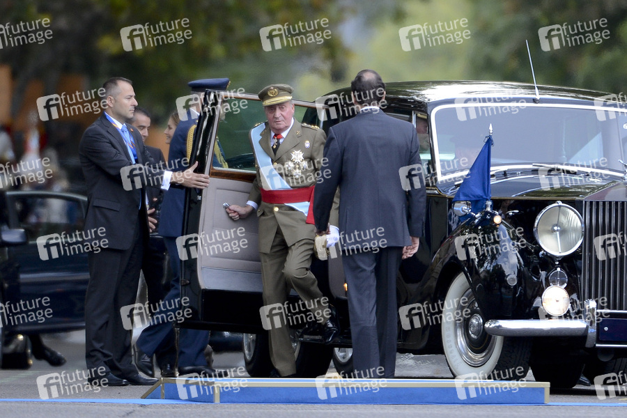 Die spanische Königsfamilie bei der Hommage an die Nationalflagge mit Militärparade am Palacio Real, Madrid