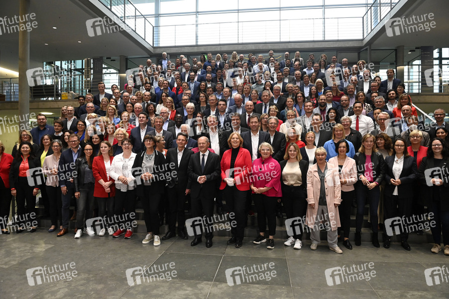 Saskia Esken, Rolf Mützenich, Olaf Scholz, Bärbel Bas u.a. beim Bildtermin mit der neuen SPD Fraktion auf der Fraktionsebene im Reichstagsgebäude. Berlin, 29.09.2021