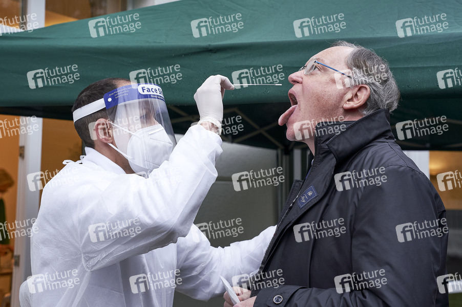 Stephan Weil unterzieht sich einem Corona-Schnelltest beim Besuch im Seniorenpflegeheim Waldhausen Dr. Körber GmbH in der Waldhausenstraße. Hannvoer, 04.02.2021