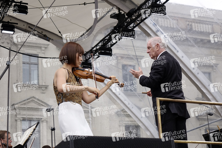 Jiyoon Lee und Daniel Barenboim beim 'Staatsoper für alle 2019' Event mit den Sinfoniekonzerten 'Felix Mendelssohn Bartholdys Violinkonzert e-Moll' und 'Johannes Brahms zweiter Symphonie' mit der Staatskapelle Berlin live auf dem Bebelplatz. Berlin, 16.06.2019