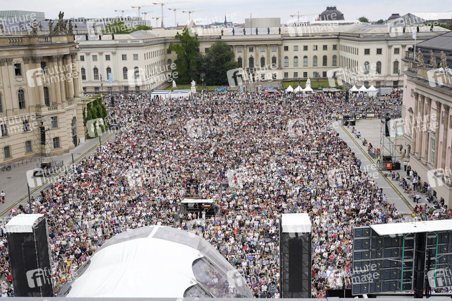 Konzertbesucher 'Staatsoper für alle 2019' Event mit den Sinfoniekonzerten 'Felix Mendelssohn Bartholdys Violinkonzert e-Moll' und 'Johannes Brahms zweiter Symphonie' mit der Staatskapelle Berlin live auf dem Bebelplatz. Berlin, 16.06.2019