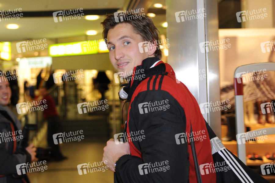 Fußball-Bundesliga Verein Bayer Leverkusen bei der Ankunft auf dem Flughafen Tegel, Berlin