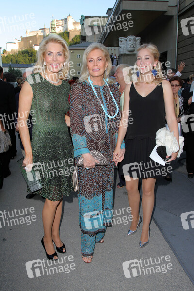Gabriele Inaara Begum Aga Khan mit Mutter Renate Thyssen-Henne und Tochter Theresa Prinzessin von Leiningen bei der Aufführung der Oper 'Giovanna d'Arco' in der Felsenreitschule im Rahmen der Salzburger Festspiele. Salzburg, 10.08.2013