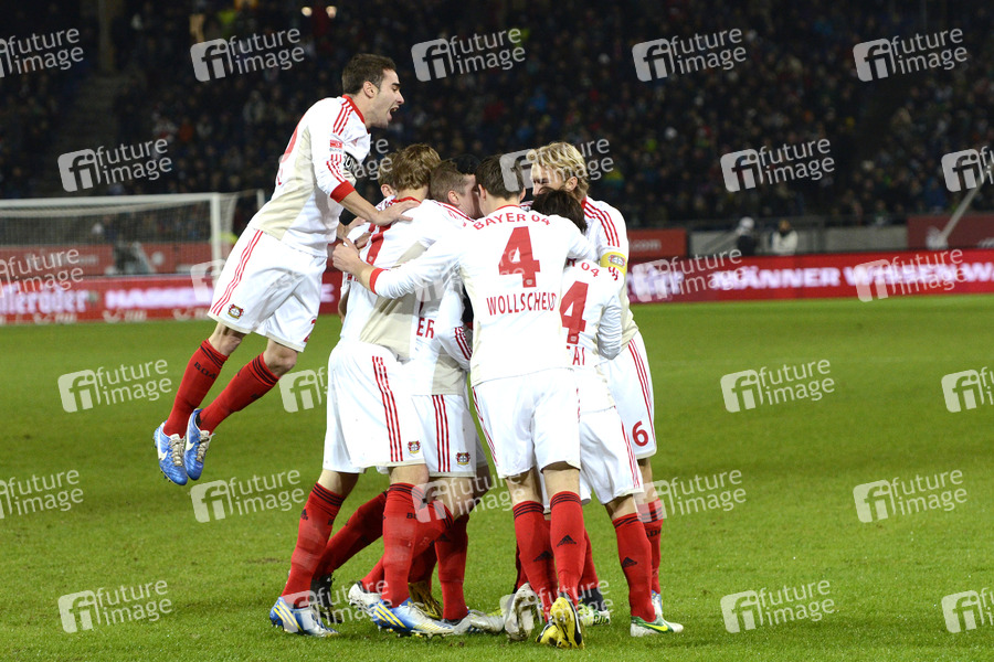 Leverkusen Spieler nach dem 1:0 durch Gonzalo Castro