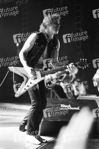 Rudolf Schenker von den Scorpions live im Hammersmith Odeon. London, 01.02.1984