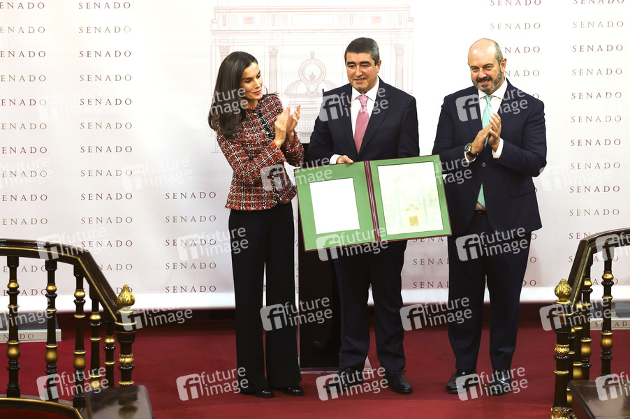 Königin Letizia von Spanien, Juan Manuel Lamet Moya und Pedro Rollan bei der Verleihung der Luis Carandell Journalismus Awards 2024 im Senatspalast. Madrid, 21.11.2024