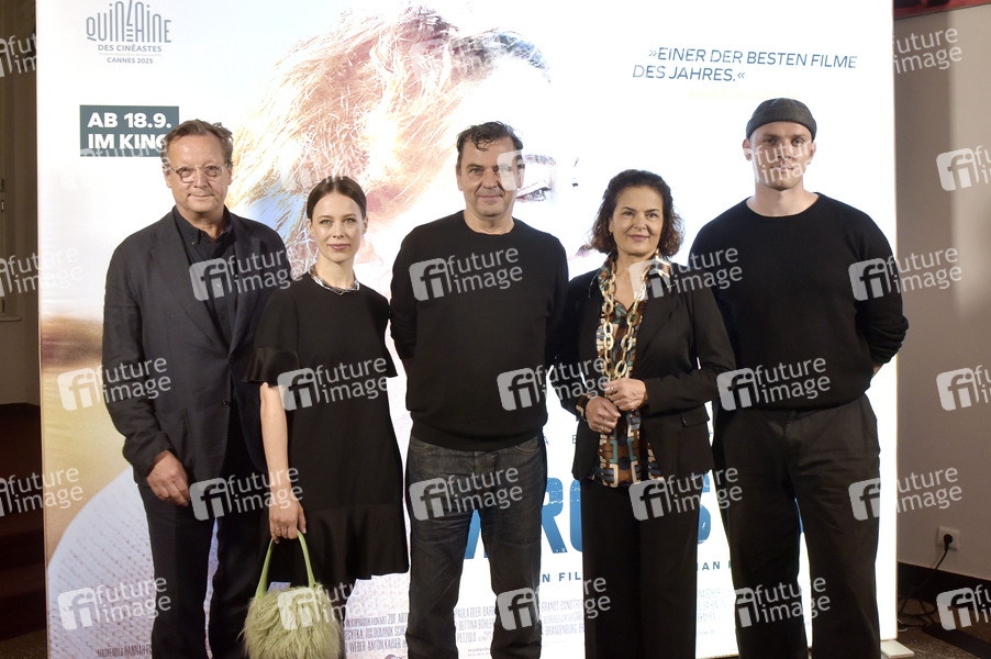Matthias Brandt, Paula Beer, Christian Petzold, Barbara Auer und Enno Trebs bei der Premiere des Kinofilms 'Miroirs No. 3' im Filmtheater am Friedrichshain. Berlin, 18.09.2025