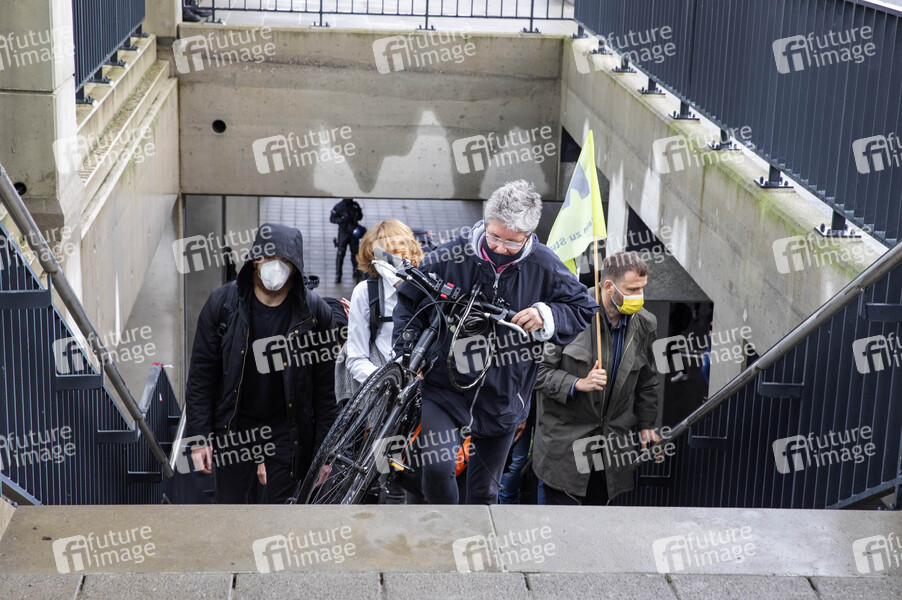 Protestaktionen von Mitgliedern des Bündnisses 'Am Boden bleiben' bei der Eröffnung des Flughafens Berlin-Brandenburg (BER). Schönefeld, 31.10.2020