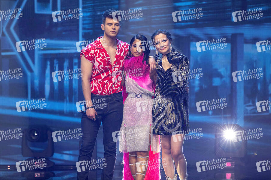 Dominik Simmen, Melissa Turan und Amber van den Elzen im Halbfinale der 19. Staffel der RTL-Castingshow 'Deutschland sucht den Superstar / DSDS 2022 in den MMC Studios. Köln, 30.04.2022