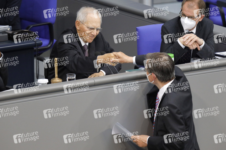 Wolfgang Schäuble und Hermann Otto Solms in der 236. Sitzung des Deutschen Bundestages im Reichstagsgebäude. Berlin, 24.06.2021