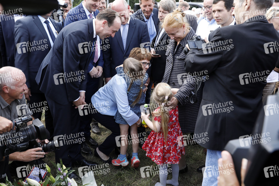 Ingo Senftleben, Annegret Kramp-Karrenbauer, Elisabeth und Alexandra Hildebrandt bei einer Gedenkveranstaltung der Brandenburger und Berliner CDU an der Glienicker Brücke. Potsdam, 13.08.2019