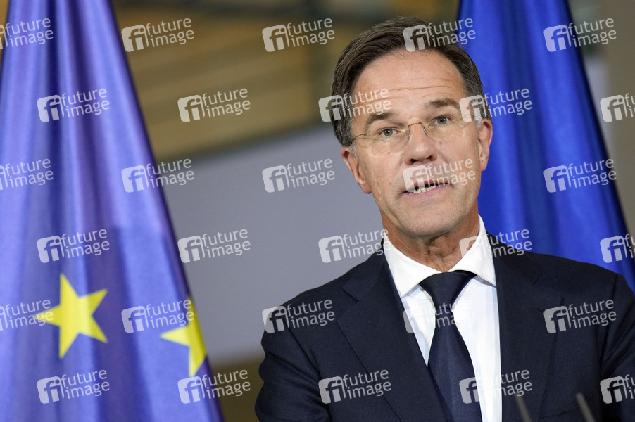Mark Rutte beim Empfang des NATO-Generalsekretärs mit militärischen Ehren und zu einem gemeinsamen Gespräch mit dem Bundeskanzler mit anschließendem Pressestatement im Bundeskanzleramt. Berlin, 04.11.2024