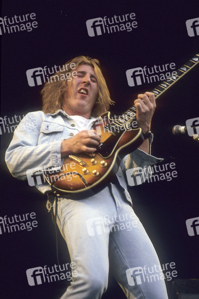 Jim Morris von Balaam and the Angel live auf dem Reading Rock Festival 1986 an der Richfield Avenue. Reading, 22.08.1986