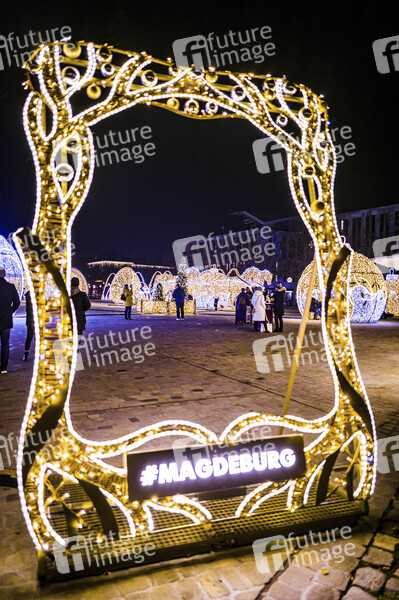 Lichterwelt auf dem Domplatz - Die Licherwelt Magdeburg mit der umfangreichste Weihnachts- und Winterbeleuchtung in Mitteldeutschland verteilt über die ganze Stadt. Magdeburg, 22.11.2022