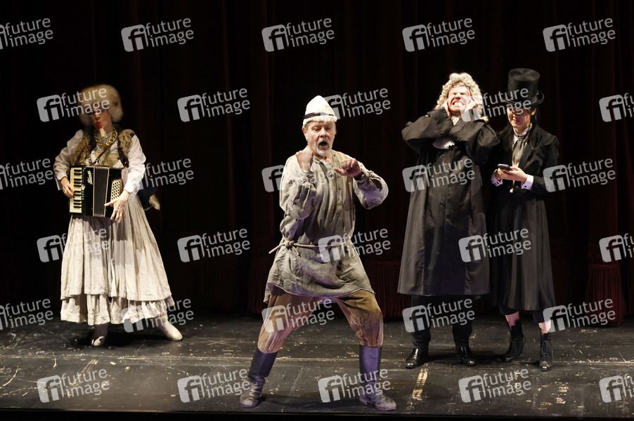 Regine Zimmermann, Andreas Leupold, Felix Goeser und Kotbong Yang bei der Fotoprobe des Theaterstücks 'Auferstehung' im Deutschen Theater. Berlin, 24.11.2021