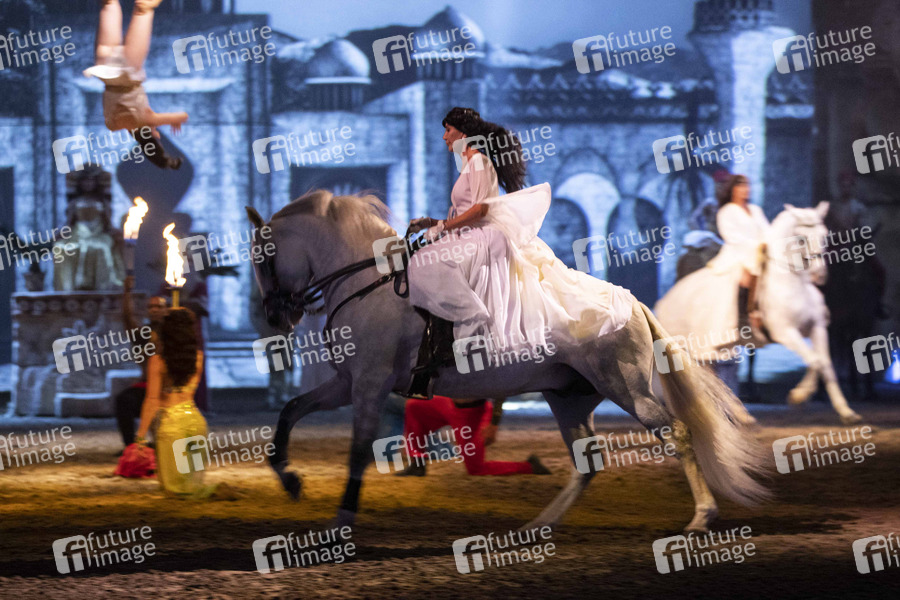 Pferdeshow 'Cavalluna - Die Legende der Wüste' in der Messehalle. Erfurt. 12.06.2022