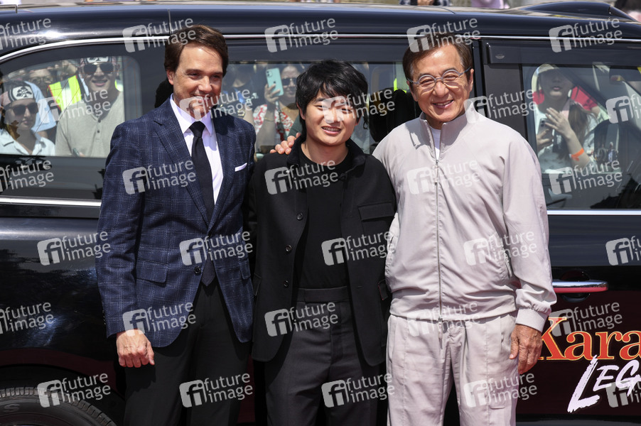 Ralph Macchio, Ben Wang und Jackie Chan beim Photocall zum Kinofilm 'Karate Kid: Legends' auf dem Trafalgar Square. London, 20.05.2025