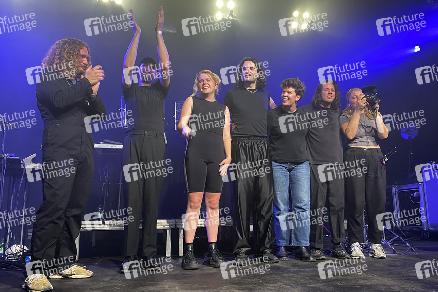 Zaho de Sagazan mit Band und Crew live bei einem Konzert in der Kantine. Köln, 17.10.2024