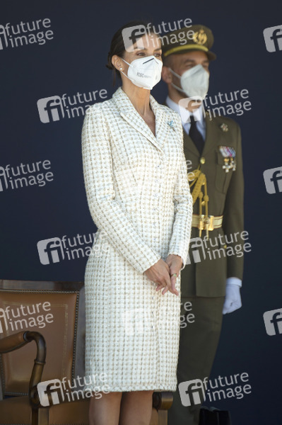 Königin Letizia von Spanien bei der Zeremonie der Übergabe der Nationalflagge an die ACAVIET (Luftfahrtakademie der Armee) in der Helipuerto Base Coronel Mate. Colmenar Viejo, 07.05.2021
