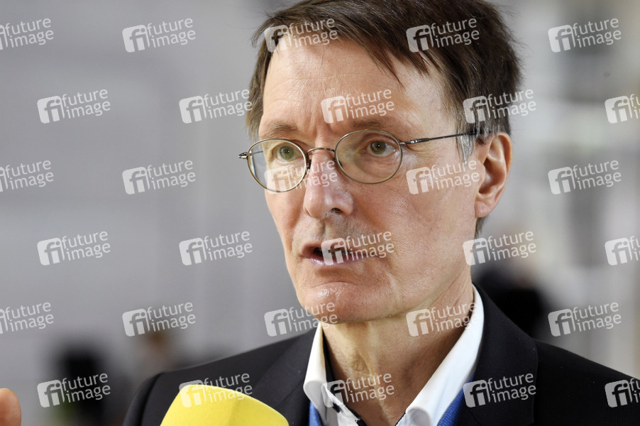 Karl Lauterbach bei einem Pressestatement am Rande der 222. Sitzung des Deutschen Bundestages im Reichstagsgebäude. Berlin, 16.04.2021
