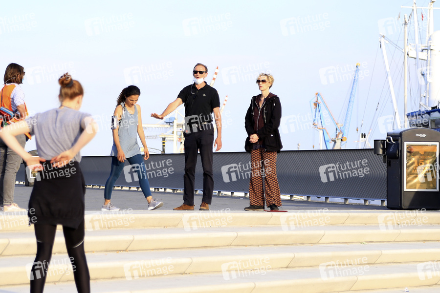 Sabine Waibel bei den Dreharbeiten zum ARD TV-Film 'Blöd gelaufen - Danke für den Abschied' an den Landungsbrücken. Hamburg, 16.06.2020