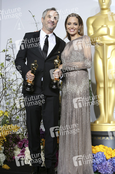 Alfonso Cuaron mit Oscars für die beste Regie und den besten Schnitt bei 'Gravity' und Angelina Jolie bei der Oscar Verleihung 2014 / 86th Academy Awards Preisverleihung im Dolby Theatre, Hollywood. Los Angeles, 02.03.2014