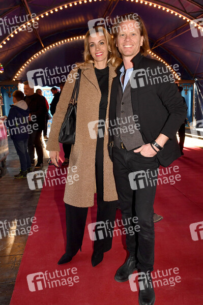 Mike Kraus mit Ehefrau Constanze Sorhagen bei der Premiere des Circus Krone Tourneeprogramms 'Farbenspiel - Gold Edition' im Circus Krone Zelt auf der Theresienwiese. München, 10.04.2025