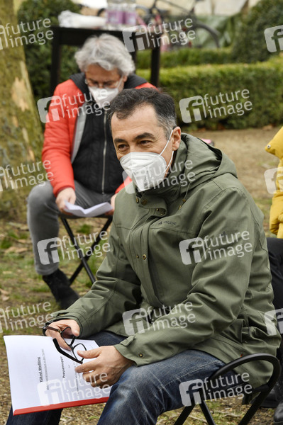 Can Dündar und Cem Özdemir bei der Pressekonferenz des KulturForum TürkeiDeutschland zur Solidarität mit den gesamten demokratischen Kräften in der Türkei, insbesondere mit inhaftierten Schriftsteller*innen, Künstler*innen, Journalist*innen, Gewerkschafter*innen und Politiker*innen vor dem Maxim Gorki Theater. Berlin, 23.03.2021