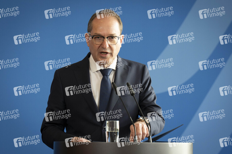 Alexander Dobrindt bei einer Pressekonferenz zum Verbot der Reichsbürger-Gruppe 'Königreich Deutschland' im Bundesministerium des Innern und für Heimat. Berlin, 13.05.2025