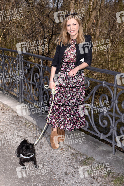 Anna Ewelina beim Spaziergang mit Hund Resi am Kleinhesseloher See im Englischen Garten. München, 28. 03.2021
