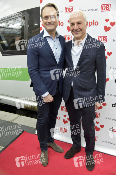 Michael Peterson und Carlo Vassallo beim duplo x Deutsche Bahn Valentinstagsevent auf dem Hauptbahnhof. Frankfurt am Main, 14.02.2020