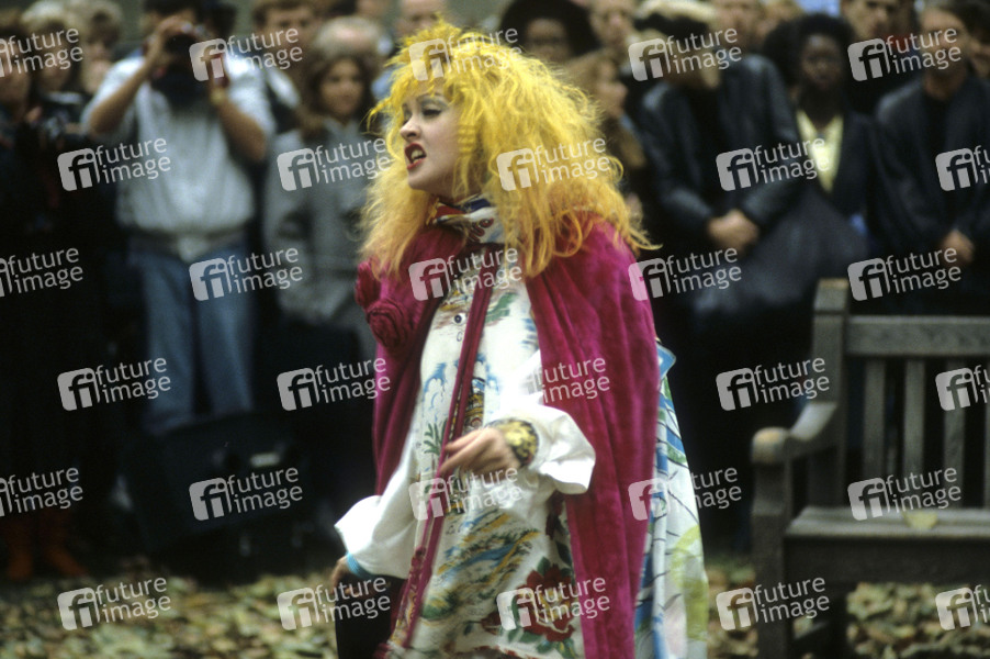 Cyndi Lauper bei den Dreharbeiten zu ihrem 'Change of Heart' Musikvideo am Leicester Square. London, 10.09.1986