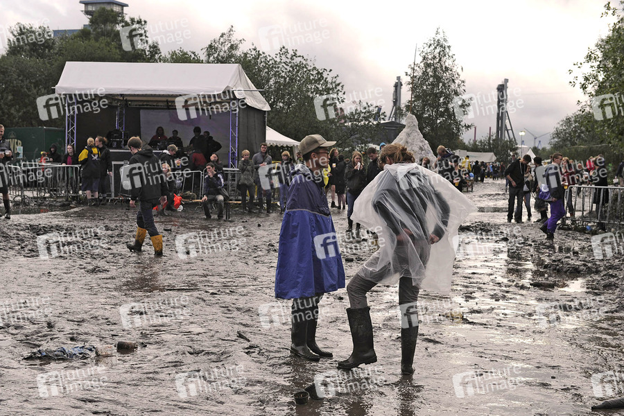 Publikum, Konzertbesucher, Festivalbesucher, Regen, Matsch, Gummistiefel, Pfützen