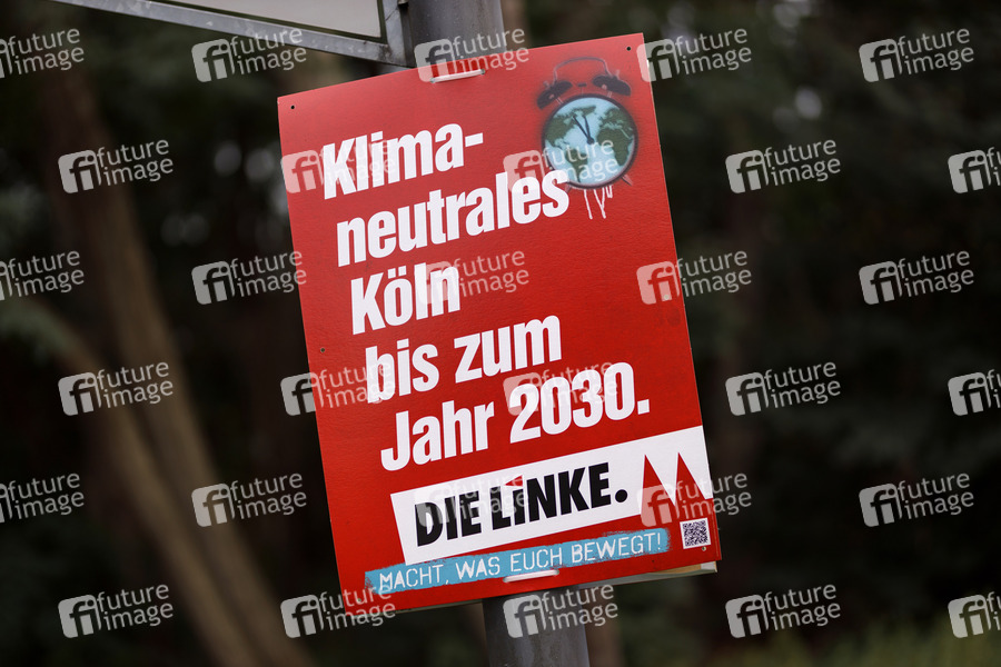 Ein Wahlplakat der Partei Die Linke für die Kommunalwahl 2020 in NRW. Am 13. September 2020 werden in NRW Oberbürgermeister, Landräte, Stadträte und Kreistage neu gewählt. Köln, 03.09.2020