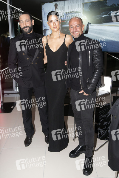 Massimo Sinato, Rebecca Mir und Peyman Amin bei der Weltpremiere des Jaguar F-Type in der Jaguar Land Rover Statement Site München Süd. München, 03.12.2019