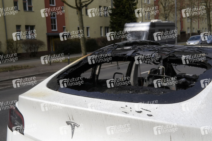 Brand, Feuer, Auto, PKW, Autowrack, Autowracks, Brandstiftung, Fahrzeug, Umweltverschmutzung, Symbolfoto, Symbolbild, Themenfoto, Symbolfoto, Autobrand, Protest gegen Elon Musk