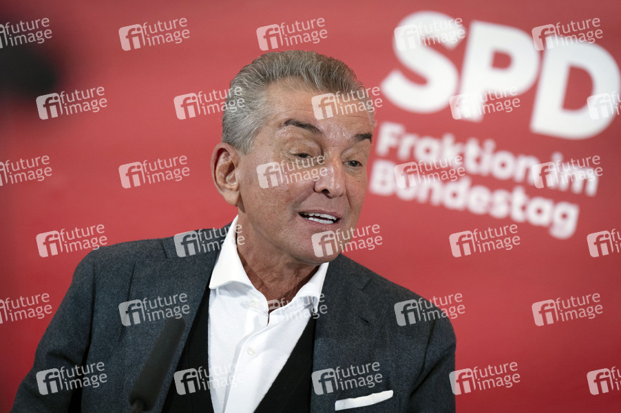 Michel Friedman beim Pressestatement zur Fraktionssitzung der SPD-Bundestagsfraktion im Reichstagsgebäude. Berlin, 07.10.2025