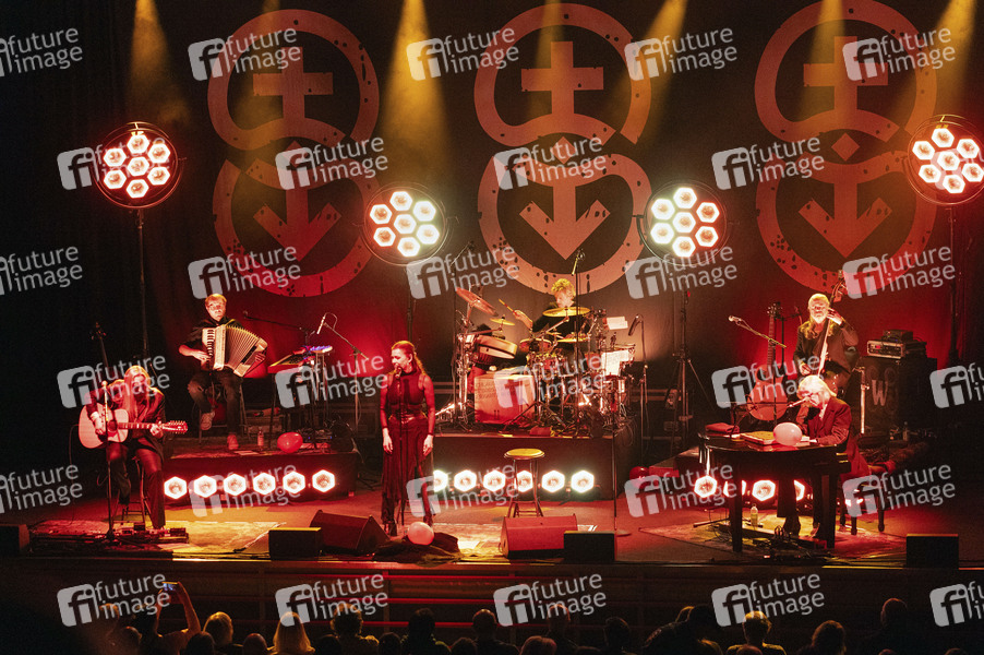 Uwe Hassbecker, Daniel Hassbecker, Julia Neigel, Ronny Dehn, Jäcki Reznicek und Ritchie Barton von Silly live bei einem Konzert der SILLY - elektroAKUSTIK - TOUR 2025 in der Stadthalle Krone. Bautzen, 06.04.2025