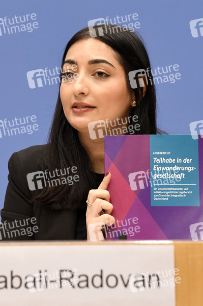 Reem Alabali-Radovan bei der Bundespressekonferenz zum 14. Integrationsbericht - Teilhabe in der Einwanderungsgesellschaft: Ein wissenschaftsbasierter und indikatorengestützter Lagebericht zum Stand der Integration in Deutschland im Haus der Bundespressekonferenz. Berlin, 11.12.2024