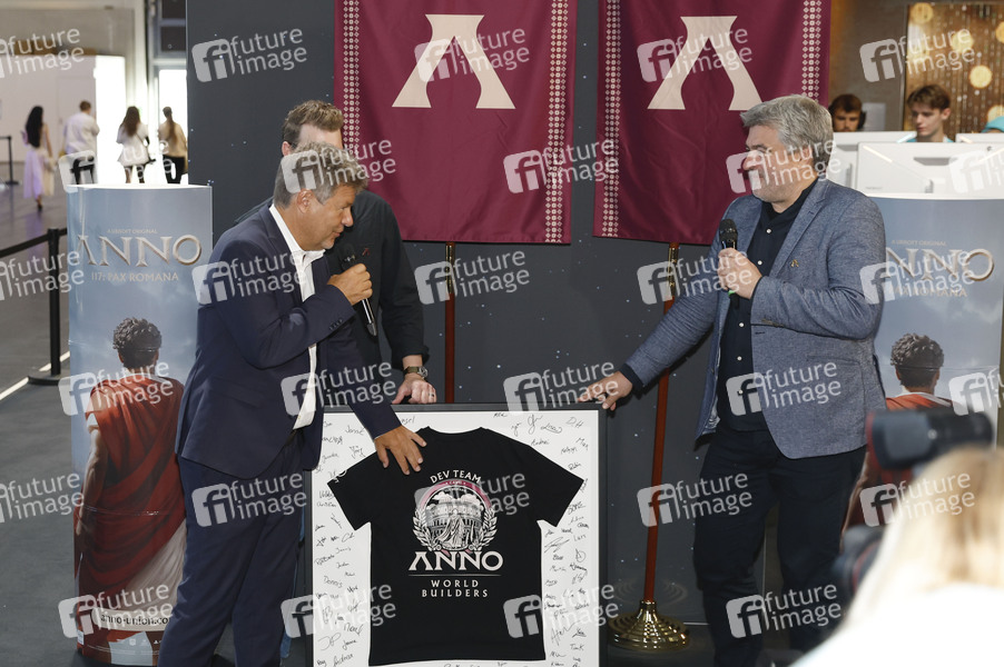 Spiele-Messe, Gaming, Gaming-Industrie, Spieleindustrie, Spielemesse, Gamingindustrie, Player, Spielesucht, Digitalisierung, Zocken, Daddeln, Games, Game, Spiele, PC-Spiele, Computerspiele, Konsolen, Konsolenspiele, Videospiele, Fair, Event, Gamer, Unterhaltungselektronik, Software, Hardware, europäische Leitmesse für digitale Spielekultur, internationale Gaming-Community, Virtual Reality, Browsergames, Spieletrends, game - Verband der deutschen Games-Branche, Politiker, Bundesminister für Wirtschaft und Klimaschutz, Bündnis 90/Die Grünen, Vizekanzler