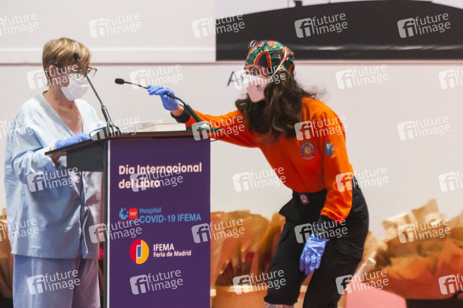 Hospital Covid-19 IFEMA, Dia Internacional del Libro, UNESCO Welttag des Buches und des Urheberrechts, Kultur, Lesung, Buch, Literatur, Krankenhaus, Hospital, Feldkrankenhaus, Medizin, Coronakrise, Corona-Krise, Kontaktverbot, Abstandsregel, Versammlungsverbot, Seuchenschutz, Quarantäne, Quarantänemaßnahme, Ausgangssperre, Mindestabstand, Social Distancing, Kontakt verboten, Ausgangsbeschränkung, Coronaviren, Virus, Viren, Corona, Covid-19, Sars-CoV-2, Coronavirus, Coronaviren, Corona-Virus, Corona-Viren, Ansteckungsgefahr, Epidemie, Pandemie, Infektion, Infektionen, Corona-Angst, Ansteckungsangst, Seuche, anstecken, Krankheit, Vorbeugung, Prävention, schützen, Schutz, Ausnahmezustand, Risiko, Risikobewertungen, Maßnahmen, Coronamaßnahmen, Corona-Infektion, Corona-Infektionen, Corona-Schutz