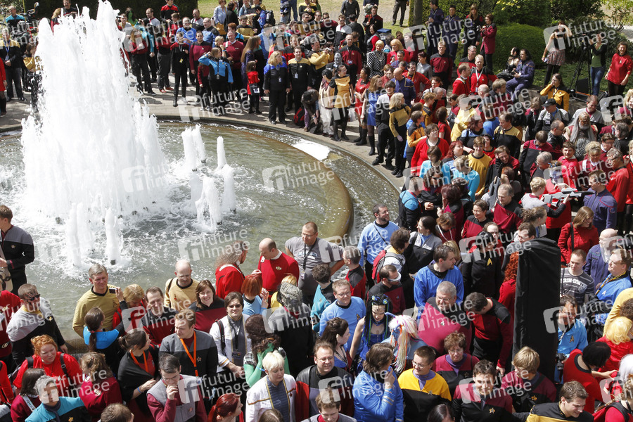 FedCon XIX im Bonner Maritim Hotel, Tag 2. Neuer Weltrekord für ein Treffen von Trekkies in Kostümen und Uniformen aus den Star Trek Serien und -Filmen für das Guinness Buch der Weltrekorde. 507 Fans trafen sich im Innenhof des Maritim Hotels in Bonn