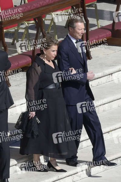 Großherzog Henri von Luxemburg mit Ehefrau Maria Teresa von Luxemburg bei der Trauermesse für den verstorbenen Papst Franziskus auf dem Petersplatz. Vatikanstadt, 26.04.2025