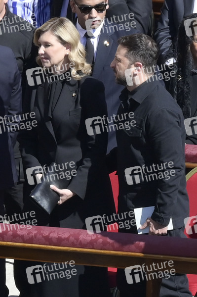 Wolodymyr Selenskyj / Volodymyr Zelenskyy mit Ehefrau Olena Selenska bei der Trauermesse für den verstorbenen Papst Franziskus auf dem Petersplatz. Vatikanstadt, 26.04.2025